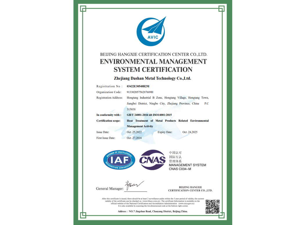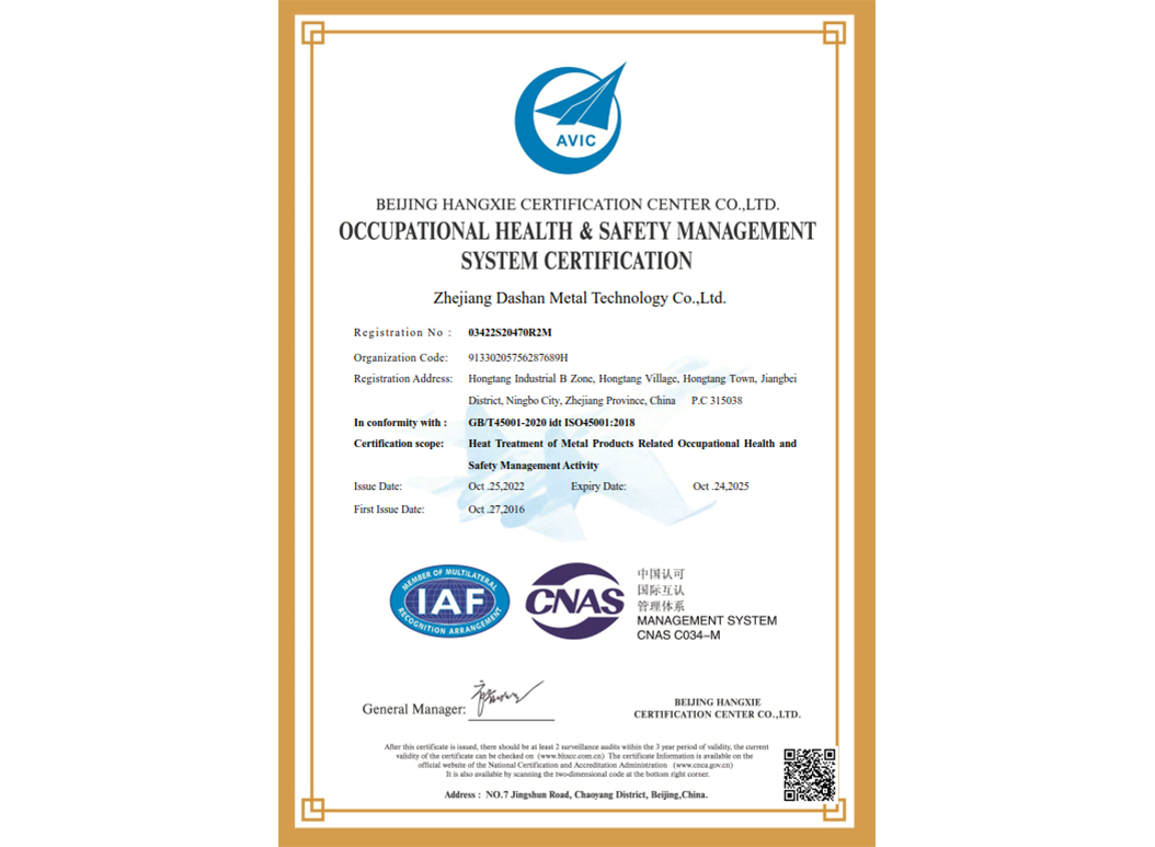 經(jīng)過近35年來不斷引進(jìn)先進(jìn)的熱處理設(shè)備和技術(shù),使企業(yè)具備了雄厚的產(chǎn)品熱處理工藝開發(fā)和生產(chǎn)能力,在熱處理行業(yè)中取得了令人矚目的業(yè)績,在客戶中建立了良好的口碑。本企業(yè)已通過IATF 16949:2016 質(zhì)量管理體系、GB/T24001-2016 idt ISO14001:2015 環(huán)境管理體系、ISO 45001:2018 職業(yè)健康安全管理體系認(rèn)證,正全面貫徹執(zhí)行相關(guān)管理體系標(biāo)準(zhǔn),為客戶提供更有保證的全面服務(wù)。大山愿與各界朋友攜手共進(jìn),為提高熱處理質(zhì)量不斷努力!